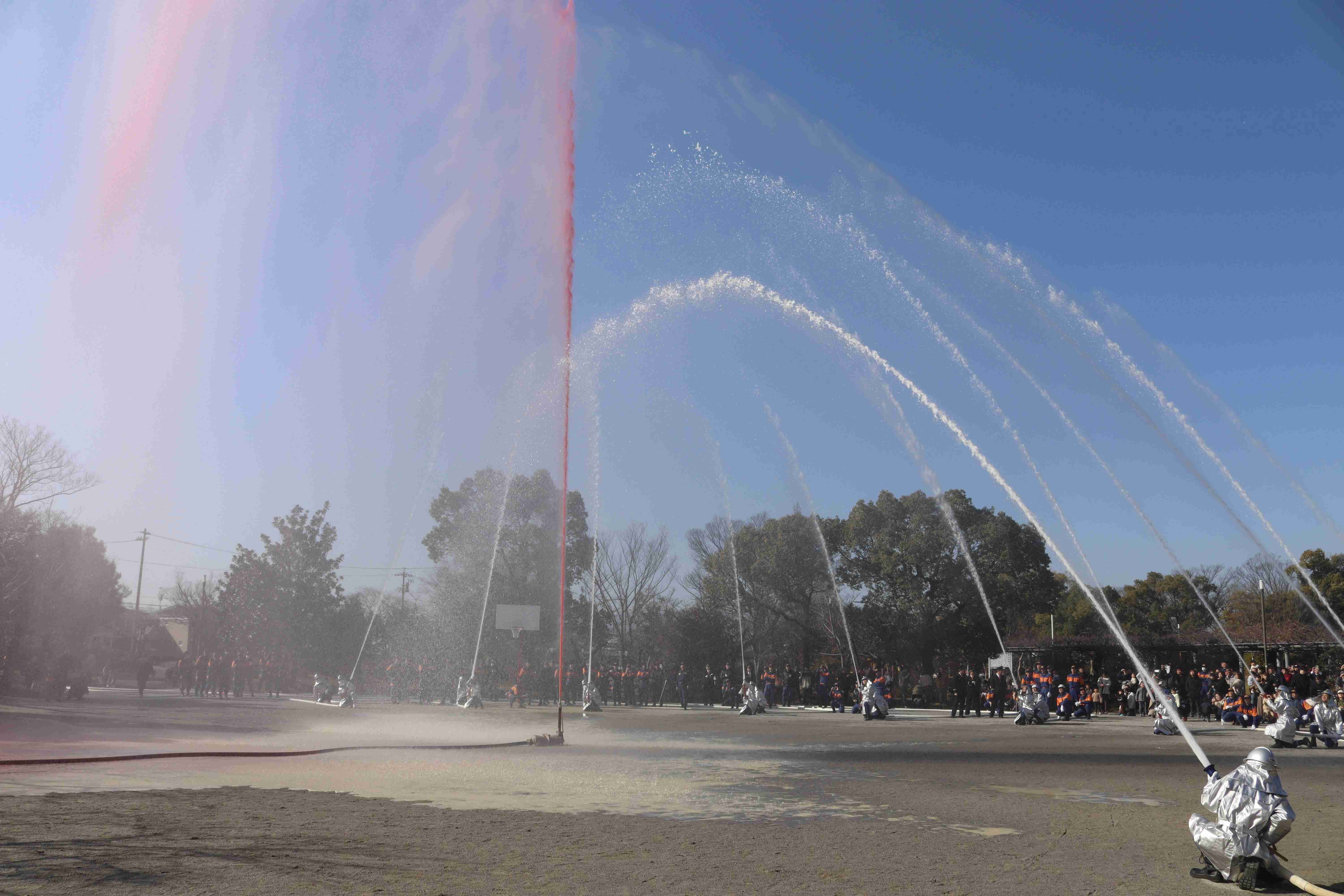 - 消防活動訓練(災害発生に際して、「自分達の地域は自分たちで守る!」を基本に、機械器具取扱訓練・火災防ぎょ訓練等の実災害を想定した訓練)