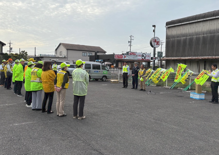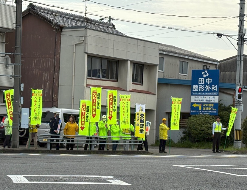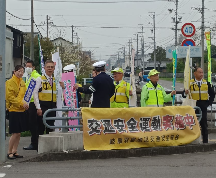 令和8年4月14日(火曜日)午前7時50分ごろ、市内の県道で、自転車に乗る方が死亡する交通事故が発生しました。この事故を受け、羽島市では岐阜羽島警察署、岐阜羽島地区交通安全協会および岐阜羽島地区交通安全協会羽島市10支部と協力し、「人波作戦」を実施し、交通安全を呼びかけました。