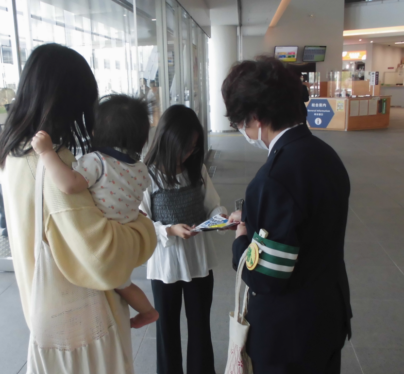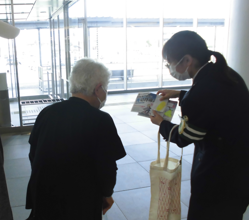 - 来庁者に反射材の着用、交通安全の啓発を行いました。